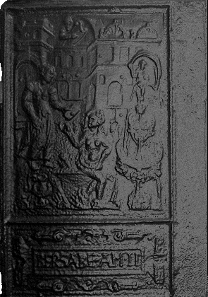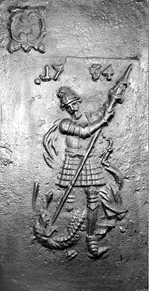 sind Gußeiserne Ofenplatten, die hinten oder seitlich eines